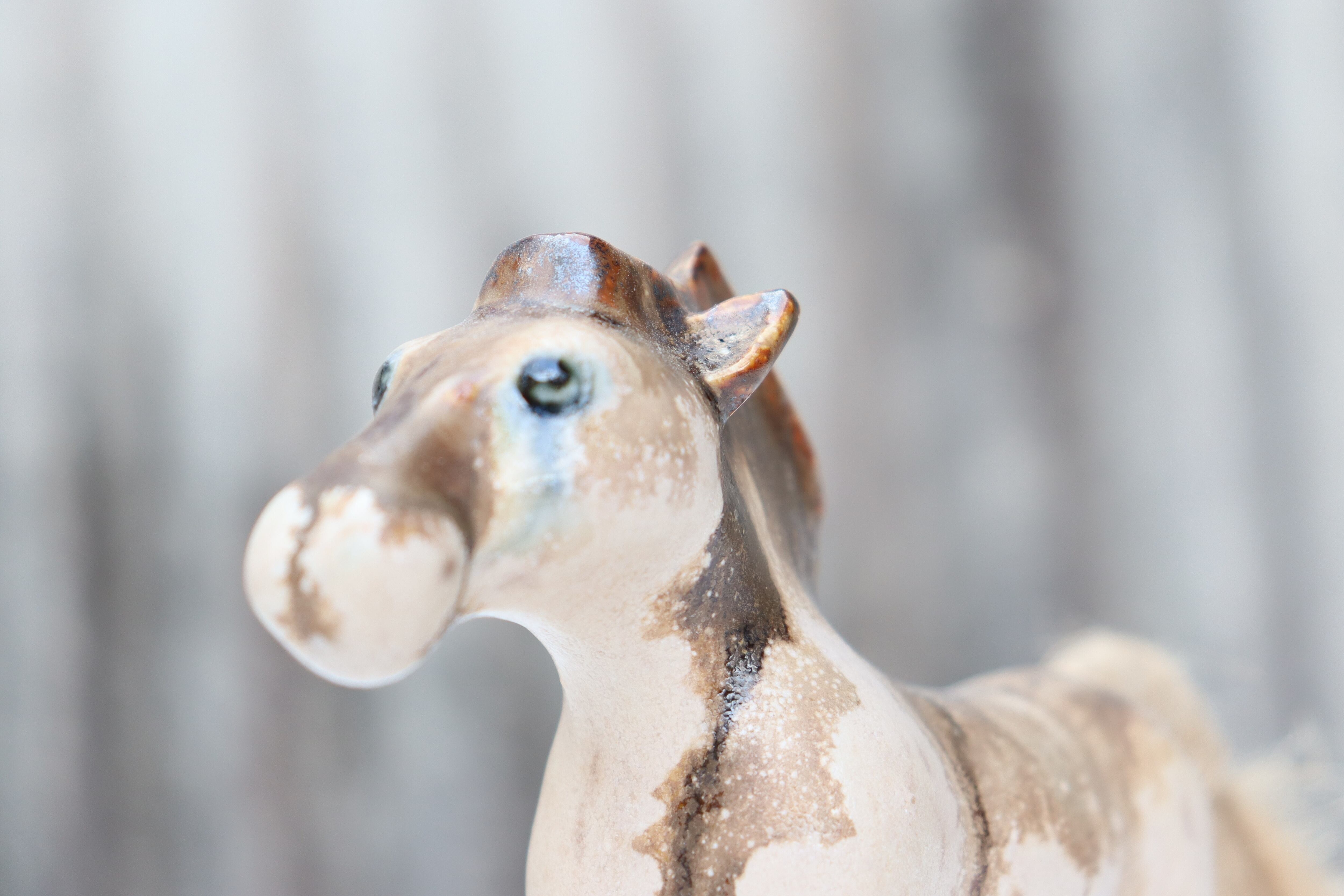 左目と右目の大きさや釉薬の流れで表情が違います。ご了承くださいますようお願いいたします。